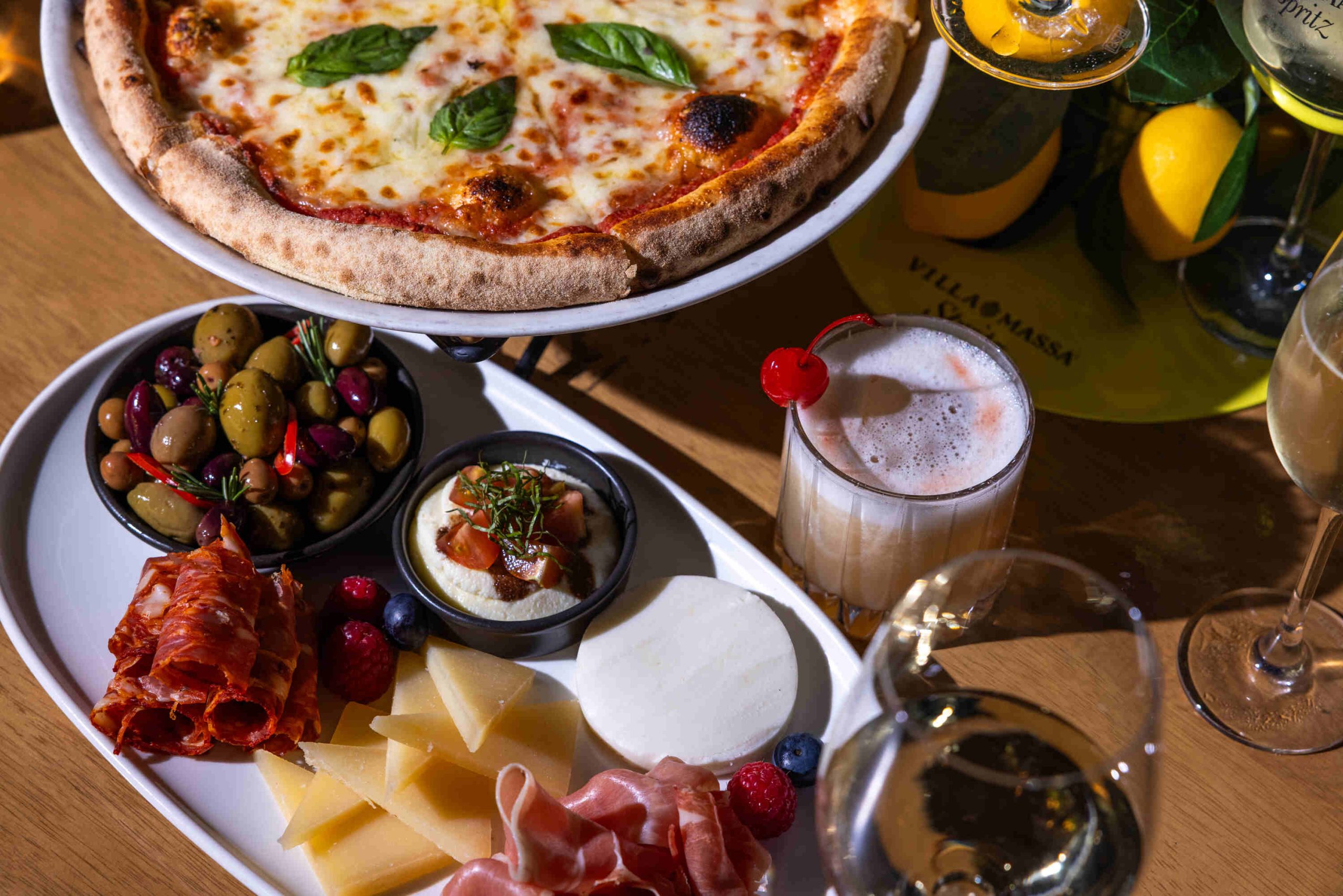 For $75 per person, graze your way through antipasti platters piled with prosciutto, salami, creamy cheeses, ricotta dip and warm focaccia, before diving into our signature wood-fired Margherita pizza. Pair it all with two hours of bottomless spritz cocktail trees, sours and seasonal sips.